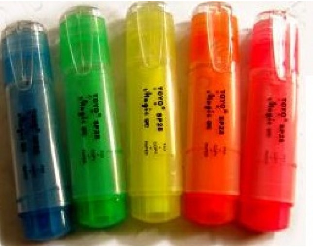 Bút dạ quang TOZO: Đặc điểm: là loại bút dạ quang (highlight) với nét mực lớn, sáng, mau khô dùng để tô đậm các nội dung cần thiết trên giấy.